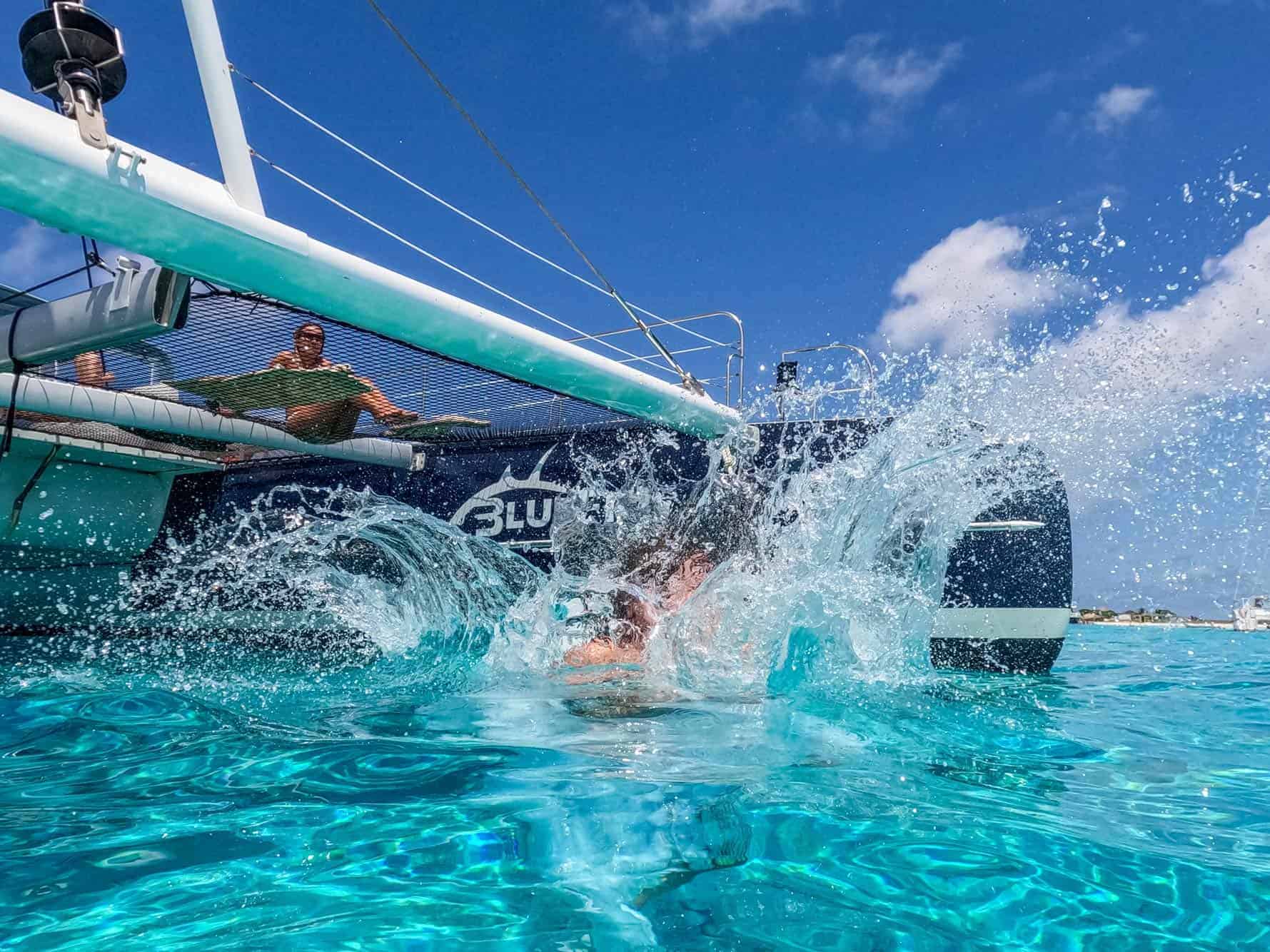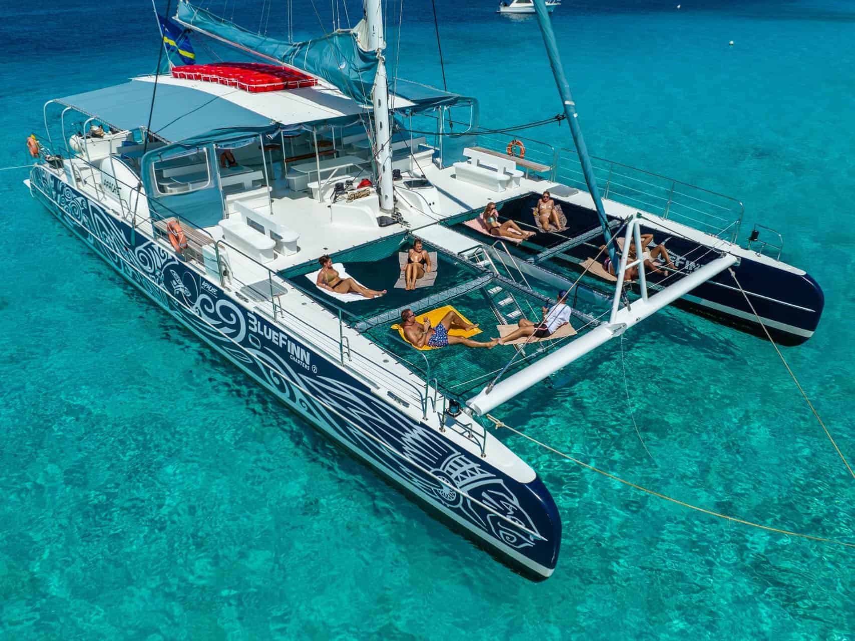 The all-inclusive trip costs US$ 120 for adults and US$ 60 for children aged 4 to 12. Children under 4 travel free. The price includes the catamaran trip, crew, BBQ lunch, premium open bar, and snorkel gear.